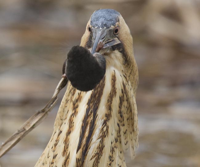 Bittern, Beeston Common, Norfolk, 15th February 2008 (Sue Gantlett). The Bittern continues to perform, here supplementing its diet of cold frogs with a nice warm Water Shrew! |